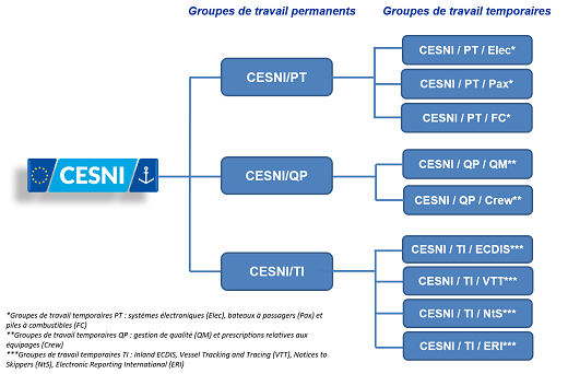 Les activités du Comité européen pour l’élaboration de standards dans le domaine de la navigation intérieure (CESNI) concernent notamment les prescriptions techniques applicables aux bateaux (CESNI/PT), les qualifications professionnelles pour le personnel navigant (CESNI/QP) et les technologies de l’information (CESNI/TI).
